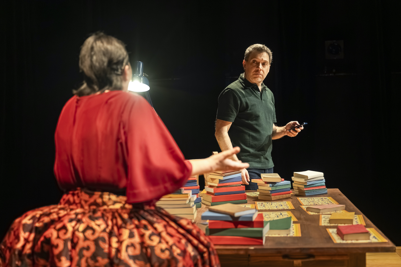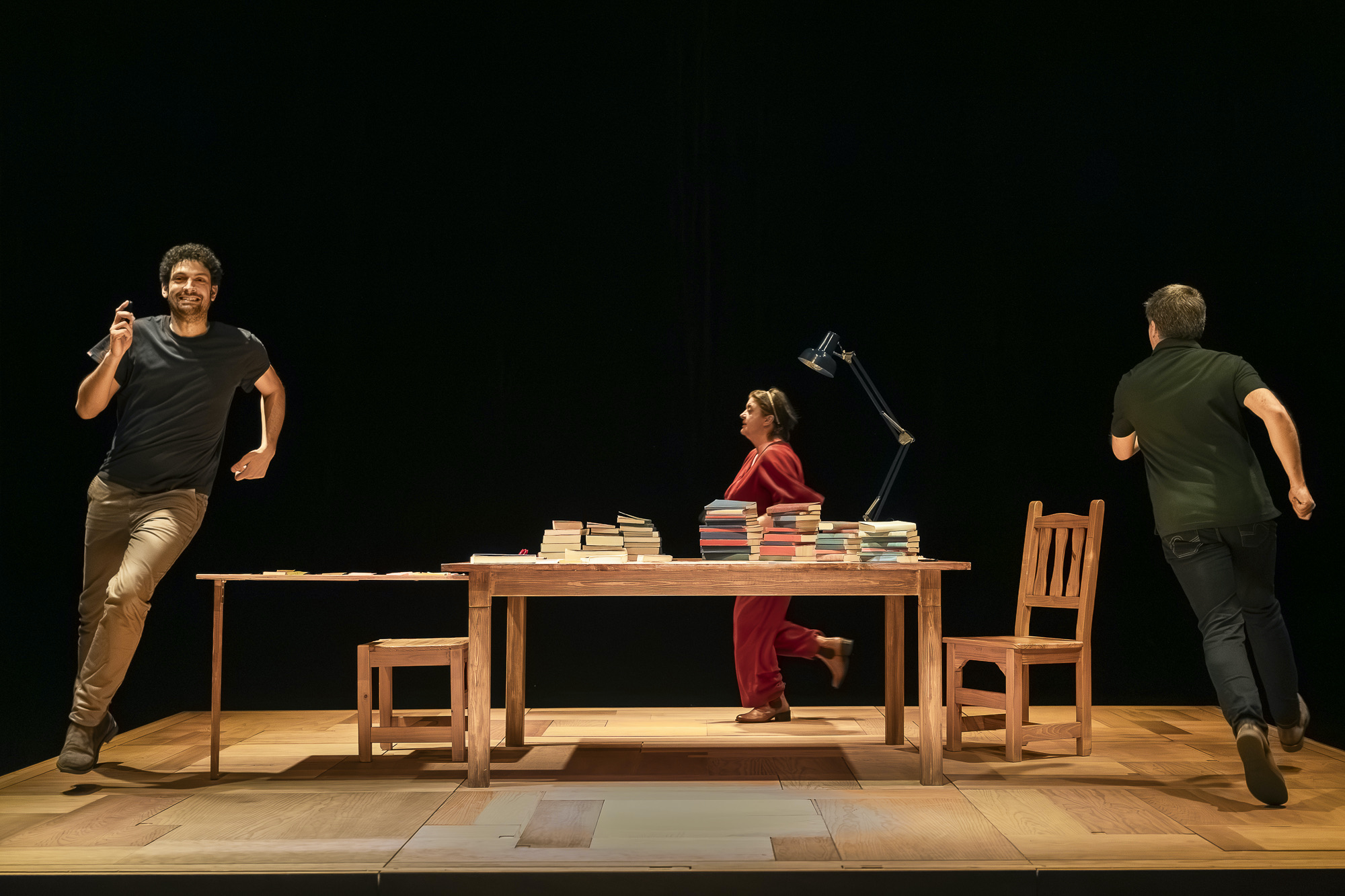 Sur scène une table jonchée de livres. Autour d’elle, une femme, deux hommes, et une mauvaise nouvelle à annoncer au public : le spectacle ne sera pas donné, les interprètes ne sont pas assez nombreux pour le jouer. Alors à quoi bon …